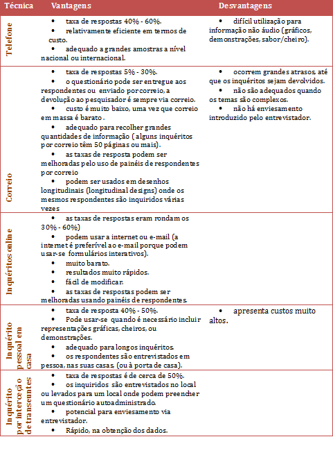 A recolha de dados por inquérito pode ser feita de diversas formas.